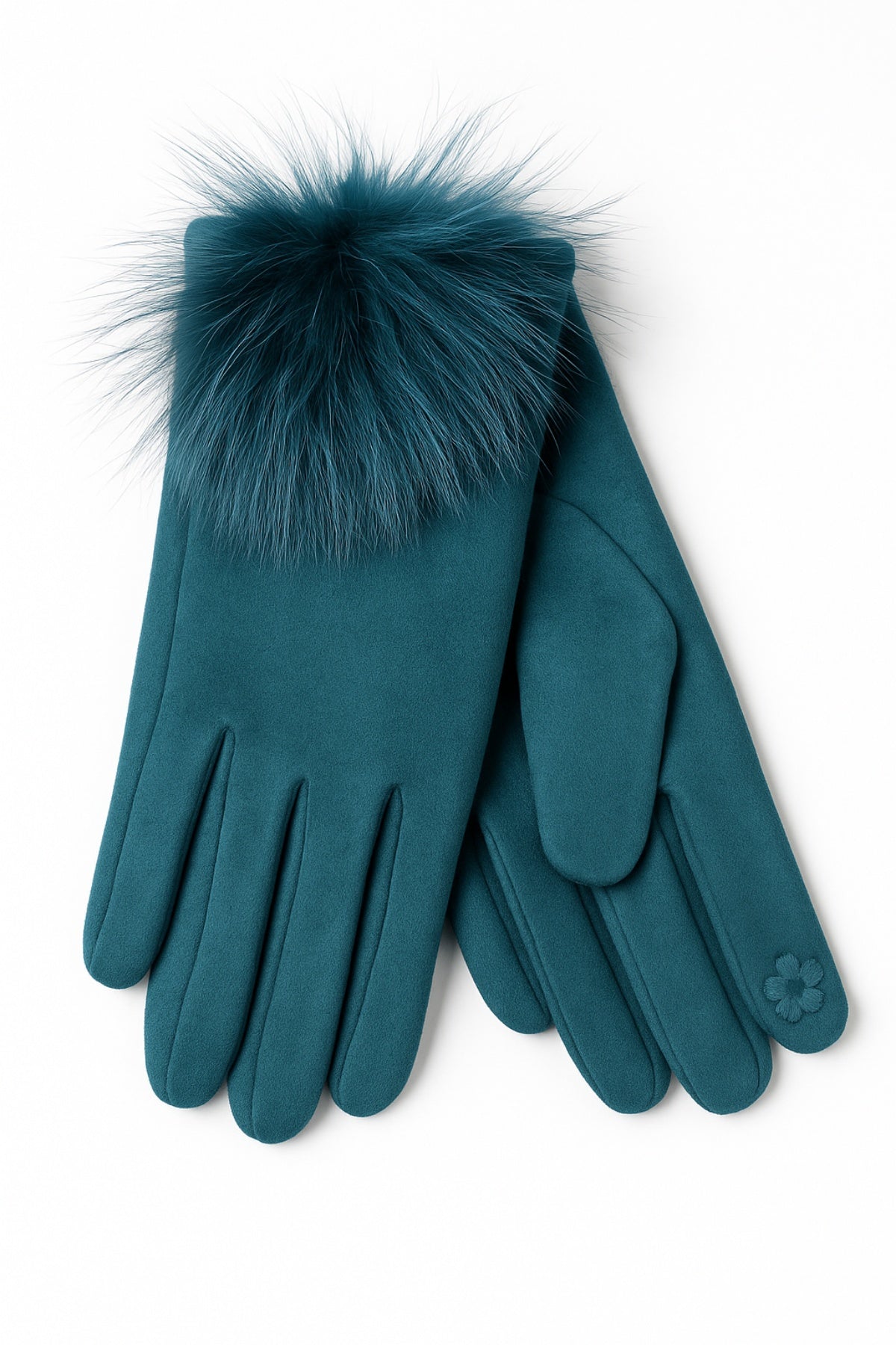 Γάντια απο σουέτ ύφασμα με διακοσμητικό φουντάκι απο φυσική τρίχα. Εσωτερική φλίς επένδυση.