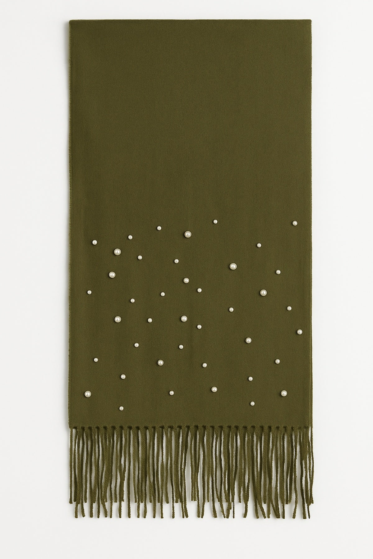 Κασκόλ Με Πέρλες Και Κρόσσια Χακί