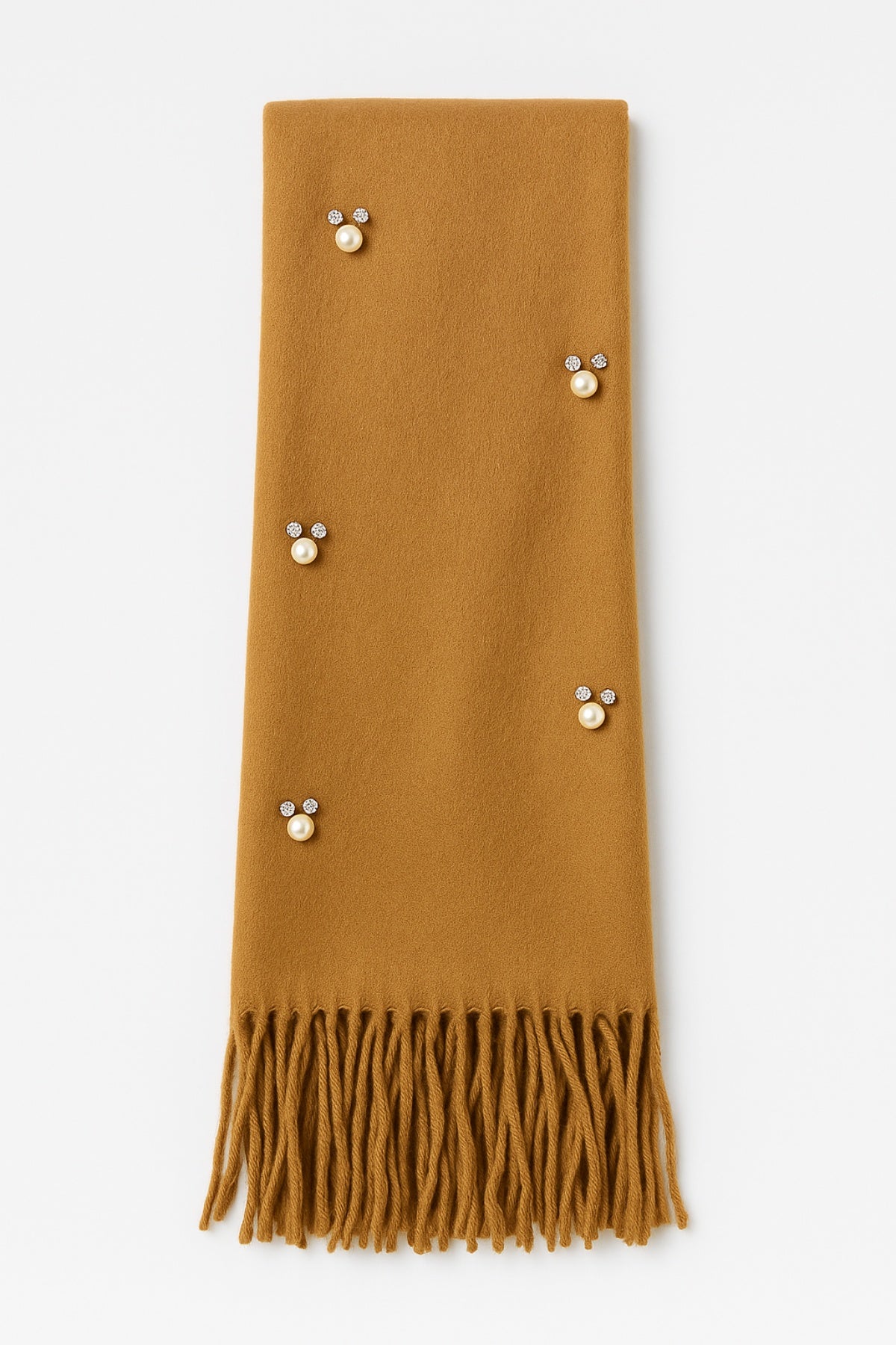 Κασκόλ με Στρας & Πέρλες Κάμελ