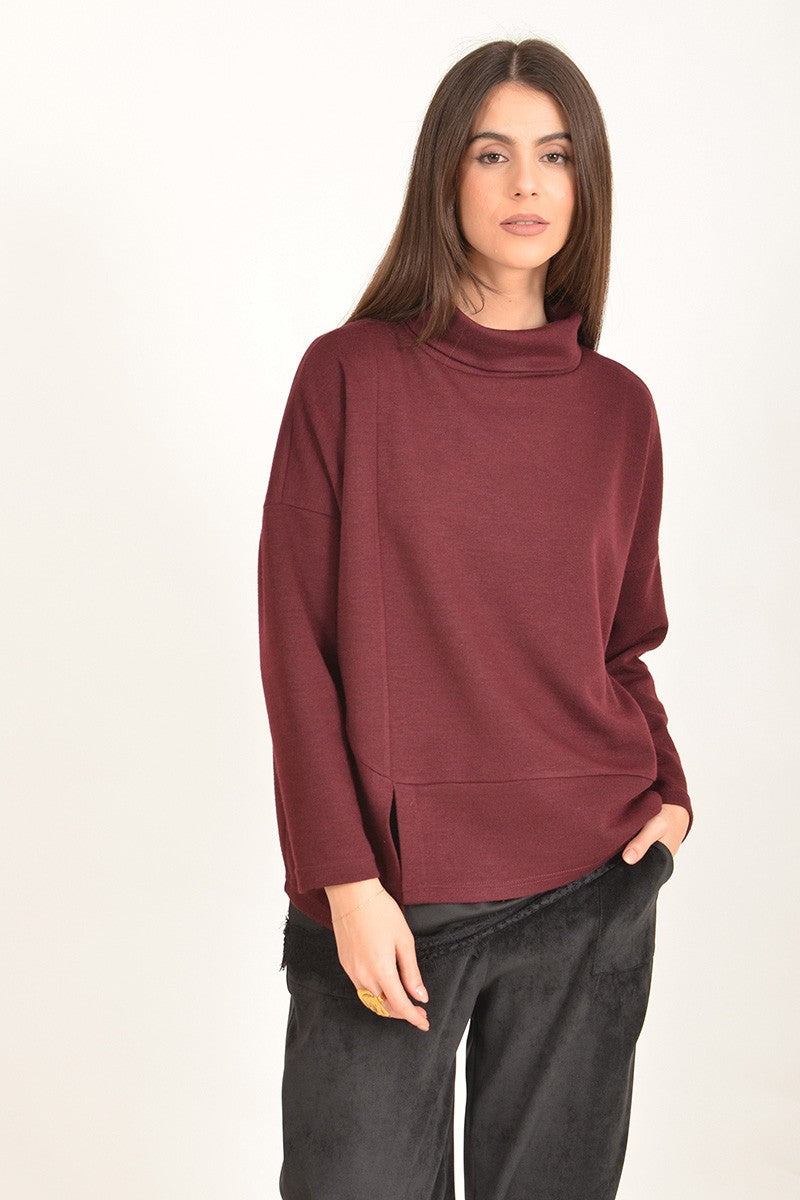 Πλεκτή Μπλούζα Χαλαρό Ζιβάγκο Μπορντό