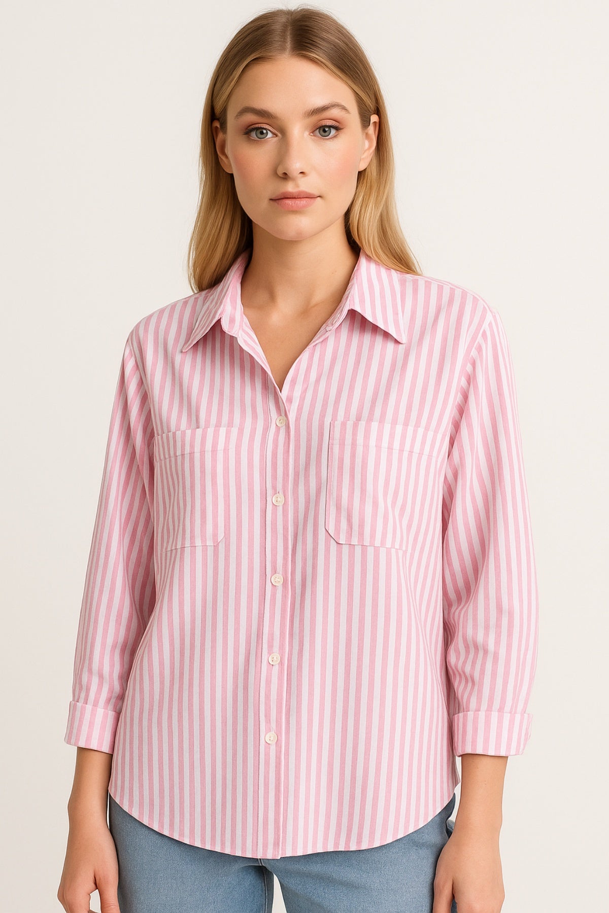 Φρέσκο και κομψό ριγέ πουκάμισο ποπλίνα σε ροζ και λευκό, που χαρίζει άνεση και στυλ. Διαθέτει κλασικό γιακά, μακρύ μανίκι με μανσέτα και δύο τσέπες στο στήθος. Η ποιοτική ποπλίνα προσφέρει δροσερή αίσθηση και ανάλαφρη εφαρμογή, ιδανική για καθημερινά looks αλλά και πιο κομψές εμφανίσεις.