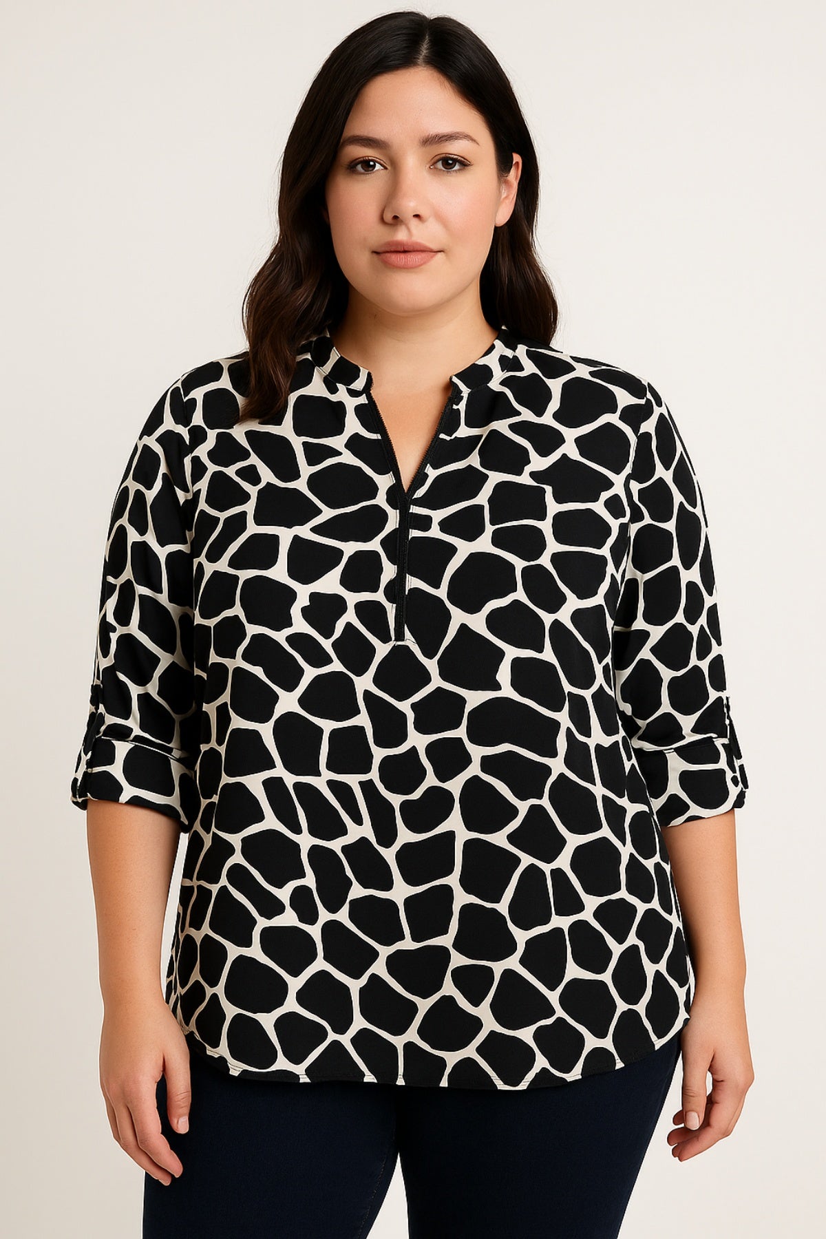 Πουκαμίσα Plus Size με Φερμουάρ & Πιάστρα Μανίκι