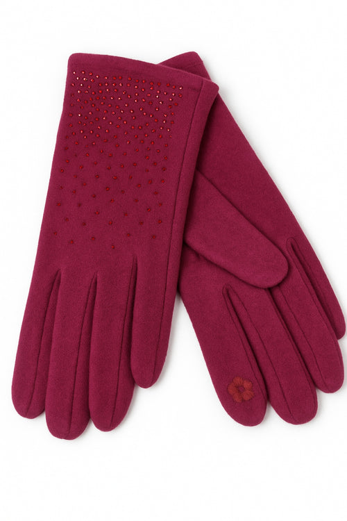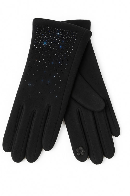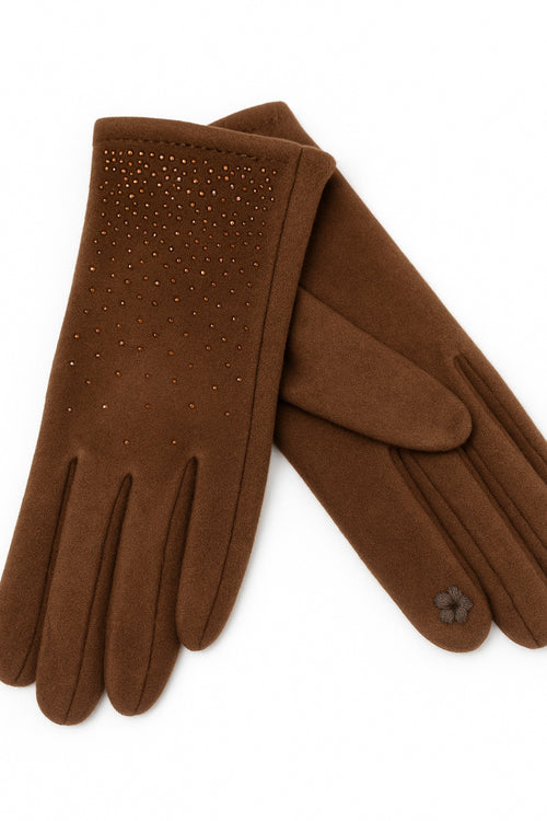 Suede Γάντια με Στρας και Τελείωμα Πόνυ Τρίχα