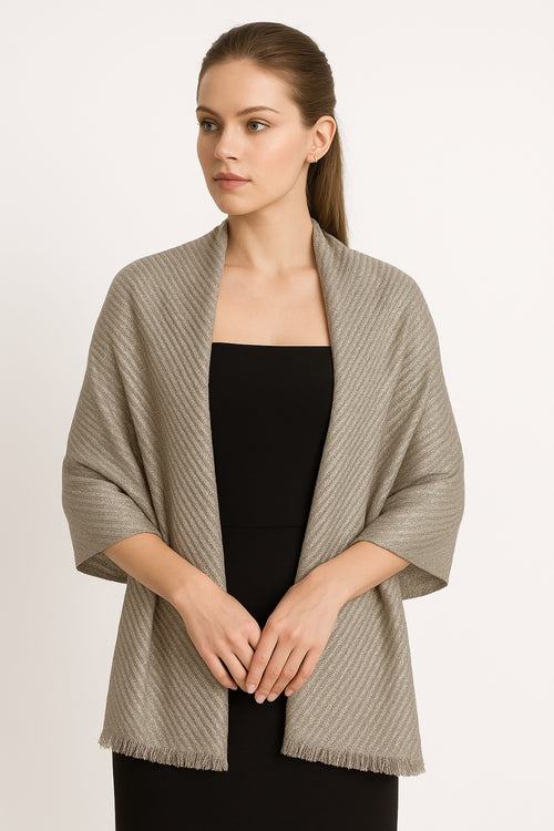Ελαφριά Πασμίνα με Γκοφρέ Υφή και Λαμπερές Λεπτομέρειες Εκρού