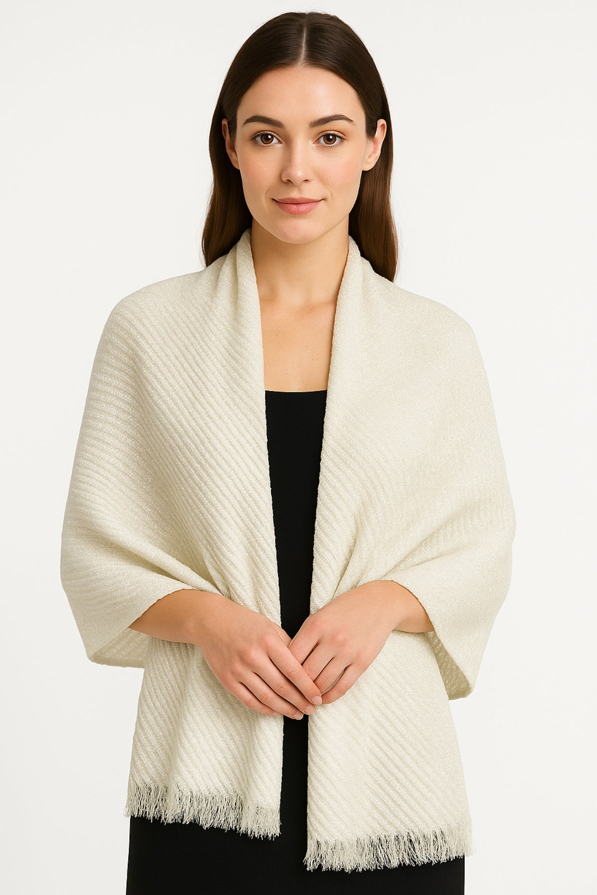 Ελαφριά Πασμίνα με Γκοφρέ Υφή και Λαμπερές Λεπτομέρειες Εκρού
