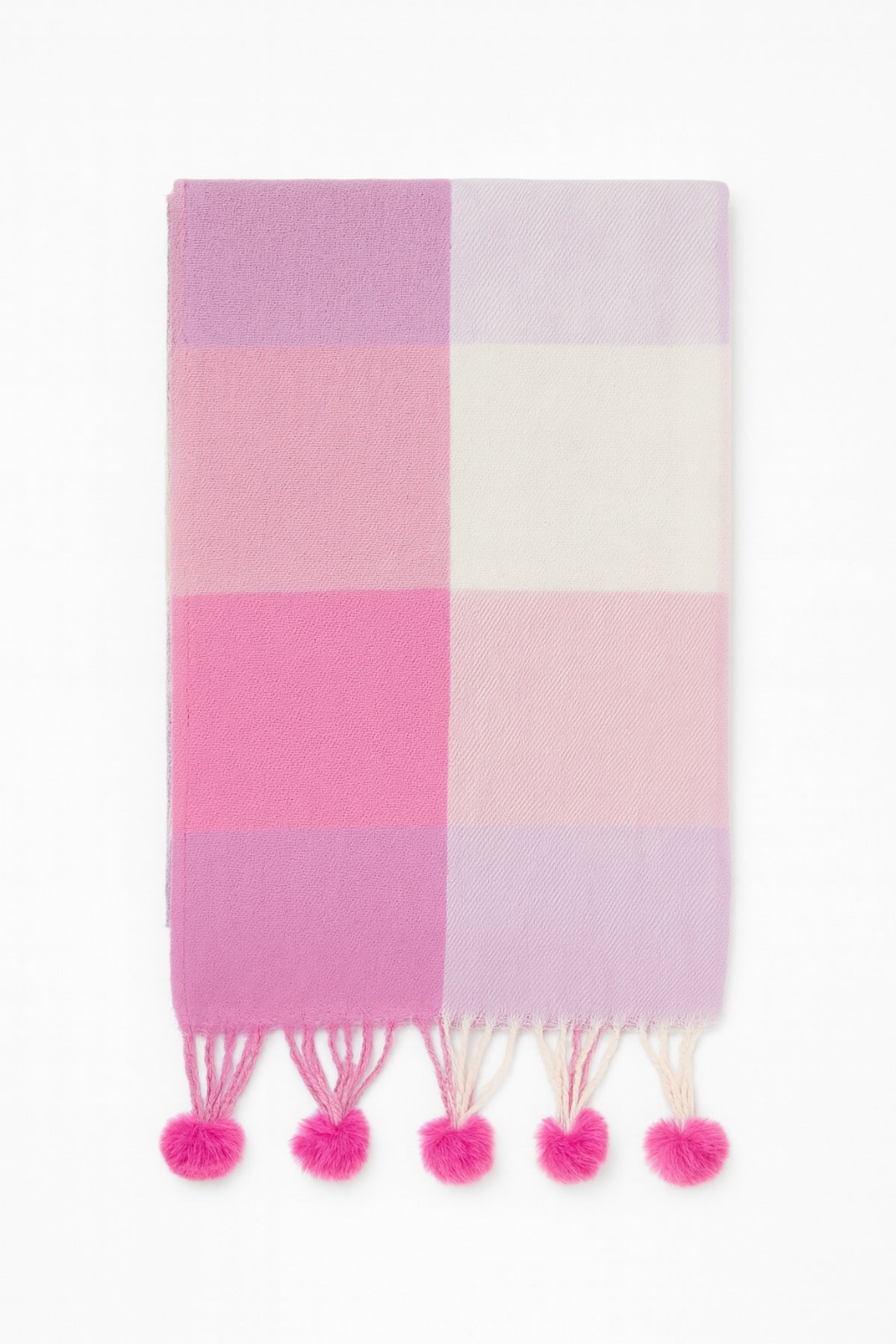 Κασκόλ Καρό Ροζ–Λιλά με Γούνινες Φουντίτσες