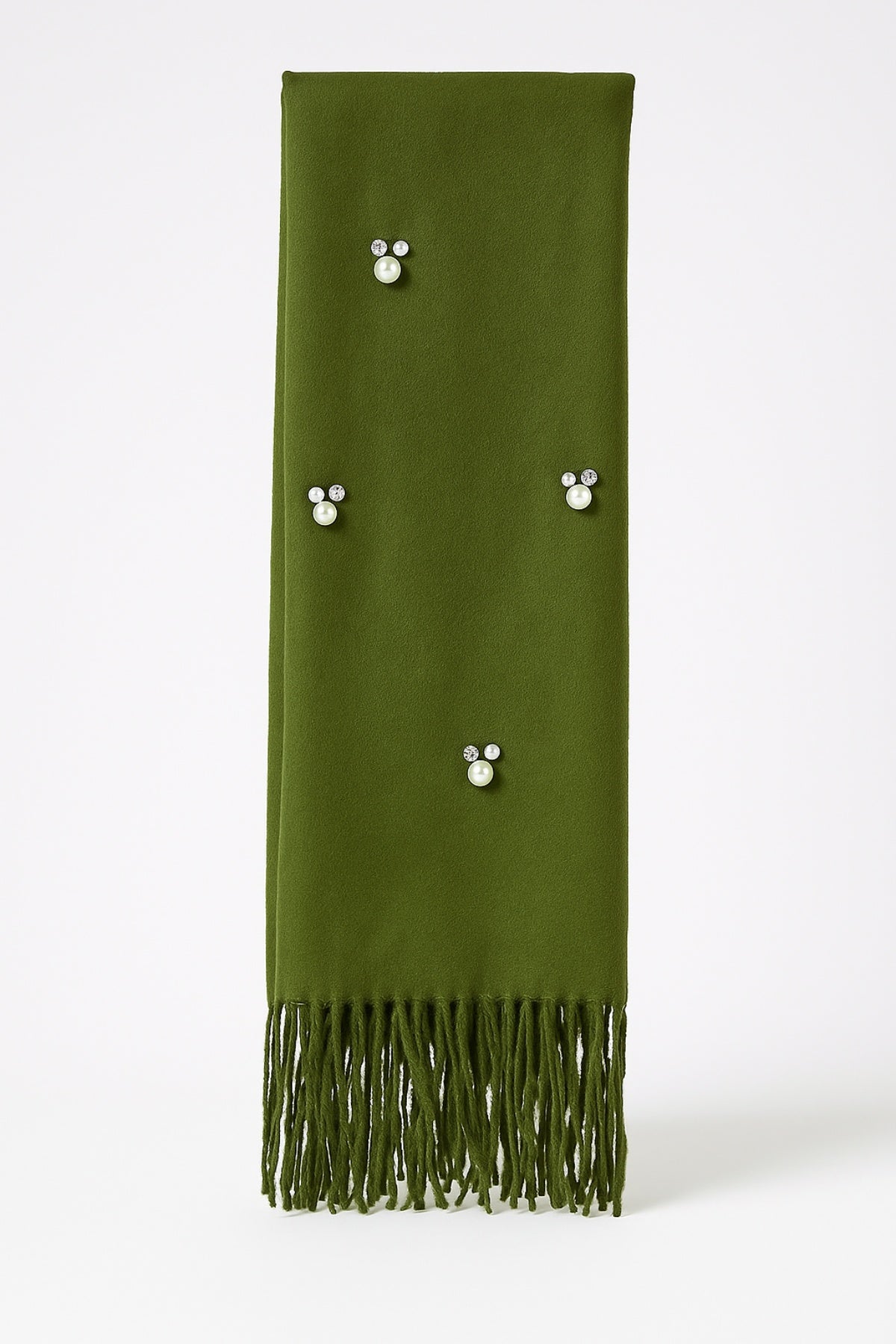 Πολύ απαλό κασκόλ με πολυτελή λεπτομέρεια από στρας και πέρλες, που χαρίζει κομψότητα σε κάθε εμφάνιση.