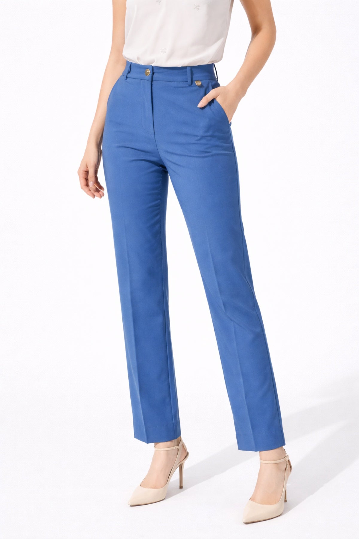 Υφασμάτινο Παντελόνι Κοστουμιού με Τσάκιση Μπλε Ραφ