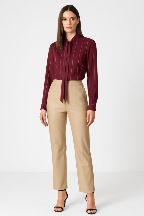 Παντελόνι Δερματίνη Ψηλόμεσο Ίσια Γραμμή Μπεζ