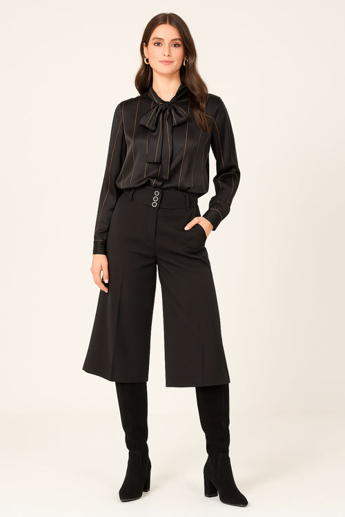 Ζιπ Κιλότ Ψηλόμεση με Κουμπιά Μαύρη