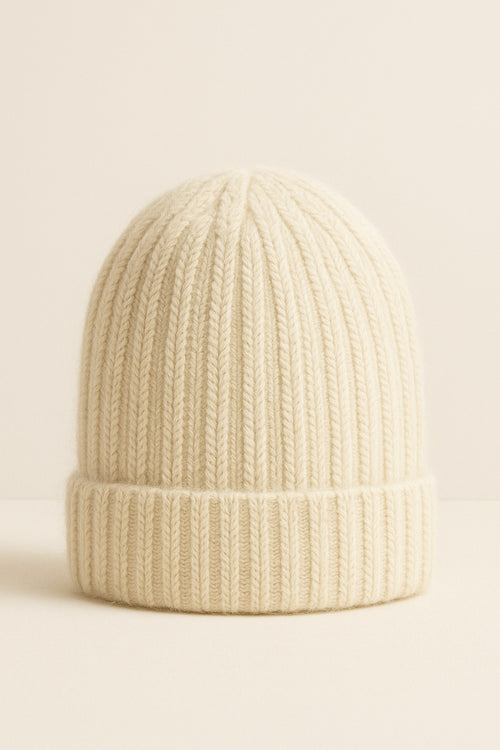 Γούνινο Καπέλο με Γείσο & Φουντίτσα σε Εκρού