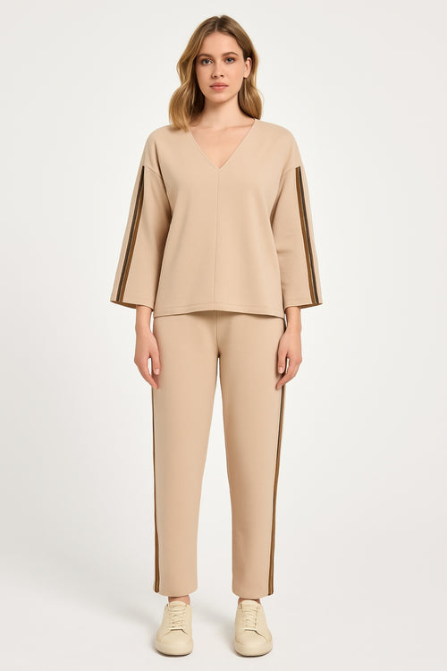 Μπεζ Γυναικείο Σετ από Ποντιστόφα με Συρίτι Στρασάκια