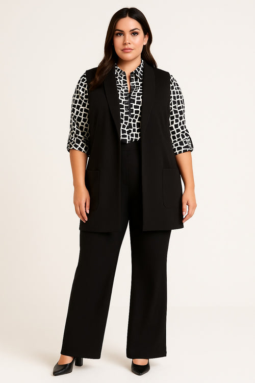 Σετ Plus Size Παντελόνι & Γιλέκο σε Scuba Crepe Μαύρο