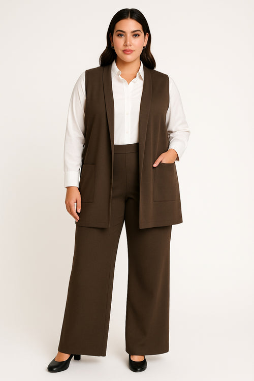 Σετ Plus Size Παντελόνι & Γιλέκο σε Scuba Crepe Σοκολατί