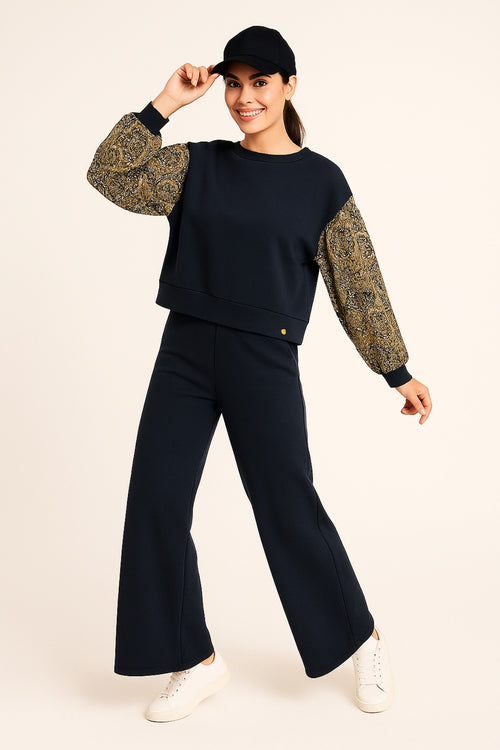 Φούτερ Σετ Με Μανίκι Ζορζέτα Μαύρο