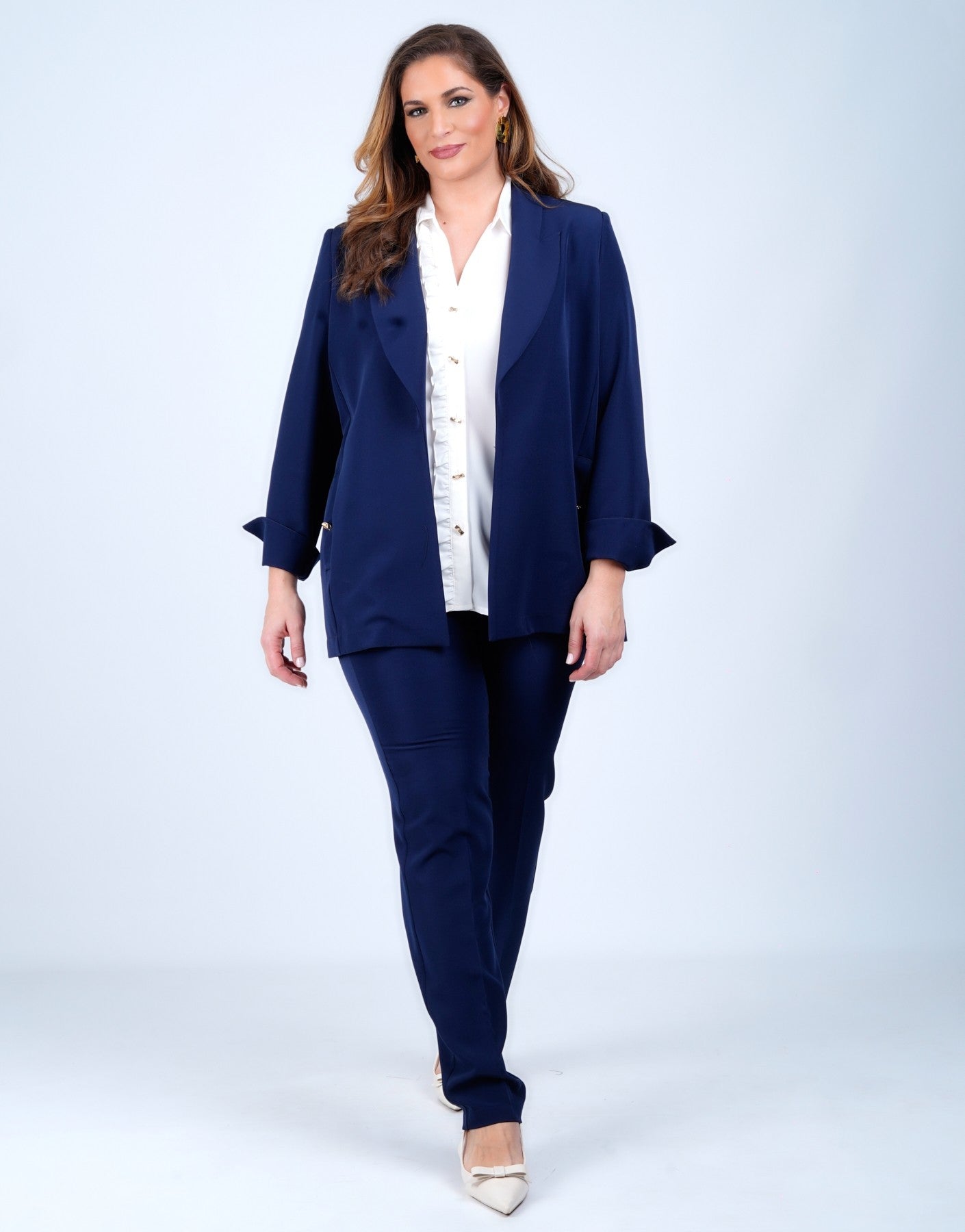 Κομψό blazer ελληνικής ραφής, σχεδιασμένο για να προσφέρει στυλ και άνεση σε κάθε εμφάνιση. Διαθέτει κλασικό πέτο που χαρίζει διαχρονική κομψότητα, ενώ τα διακριτικά χρυσά κουμπάκια προσθέτουν μία elegant και προσεγμένη λεπτομέρεια.